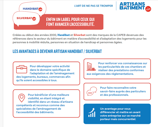 Artisans ! il reste des places pour le stage adaptabilité pour tous : formez-vous pour obtenir les labels handibat silverbat et répondre à la demande des clients !