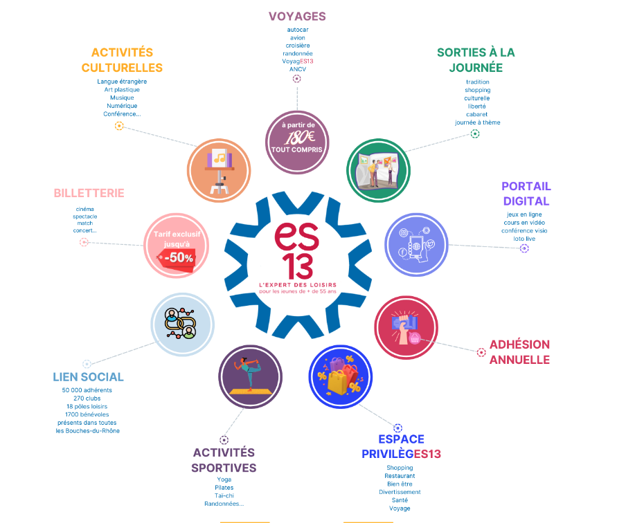 L’ES13 est une association qui propose aux jeunes de +55 ans des activités (cours de gym, cours de danse, de langues, initiation à l’œnologie ou à l’informatique par exemple), des sorties à la journée, des randonnées, des voyages et des croisières.